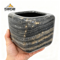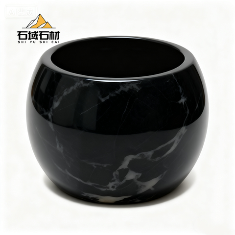 Maceta de mármol negro tallada en piedra Natural para jardín al aire libre de primera calidad, jarrón, macetas de mármol